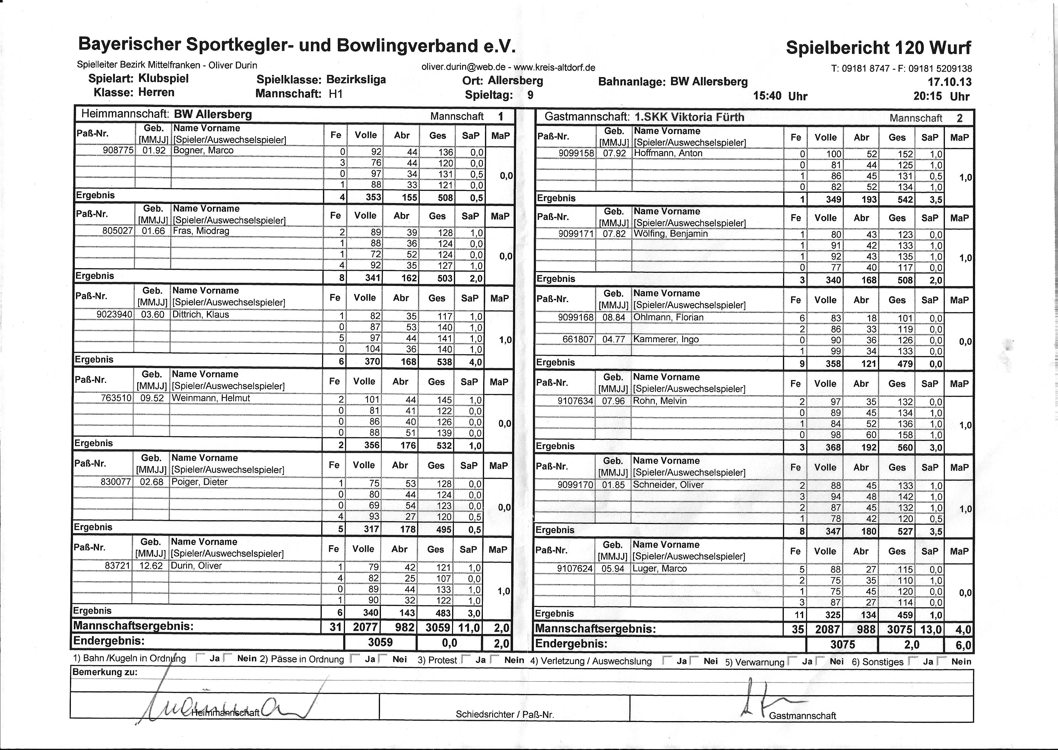 Termin Details Datum: 30. November 2013 16:00 – 19:30 Ort: Kegelbahn Allersberg Terminkategorien: Spielplan Viktoria 2 - Saison 2013/14