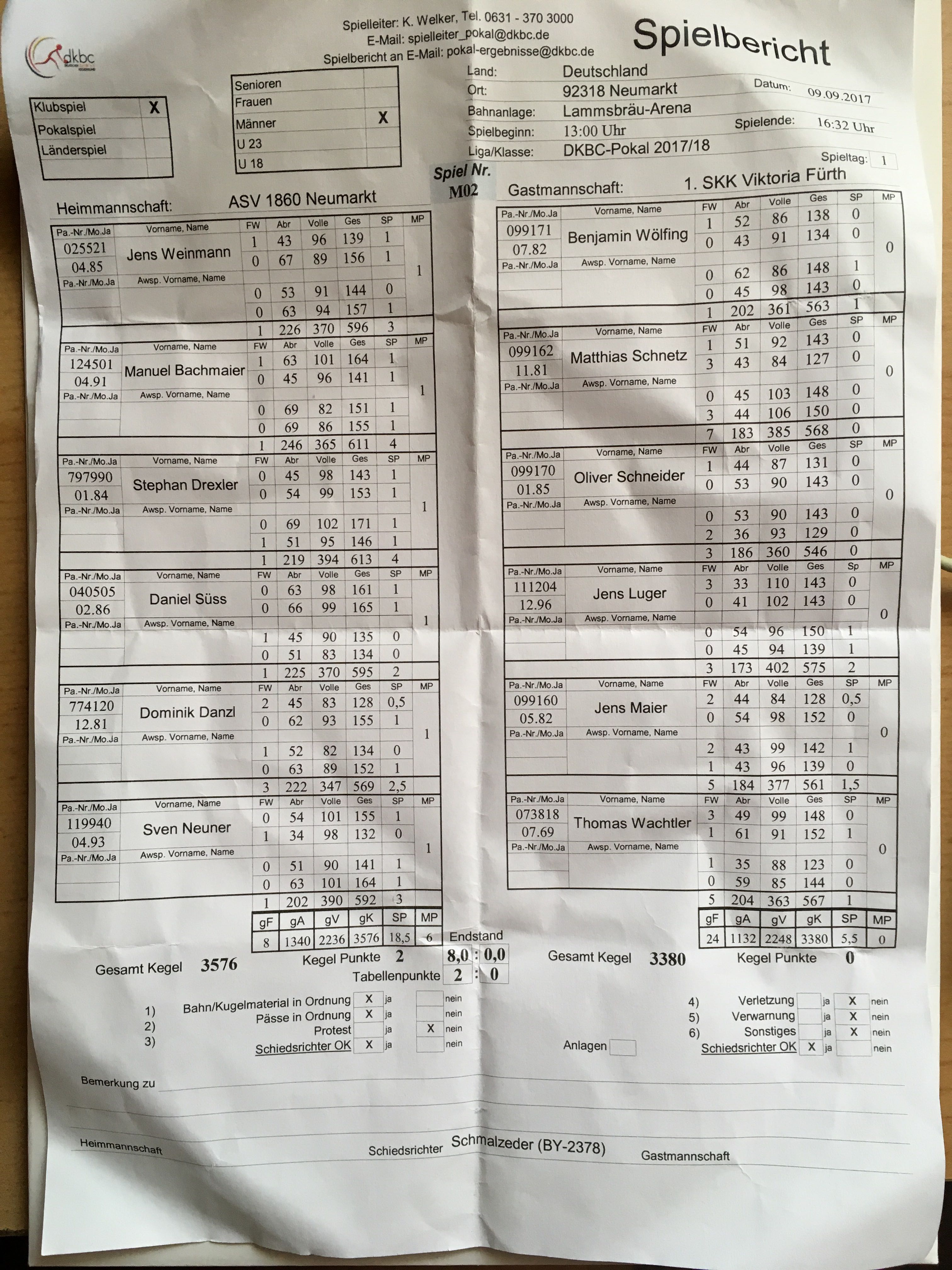 Auch wenn man als krasser Außenseiter zu dieser Pokalpartie angetreten ist, hatte man doch zumindest auf den Gewinn des einen oder anderen Mannschaftspunktes gehofft. Aber bereits nach der Mittelpaarung war die Partie zu Gunsten der Hausherren entschieden. Konnten die Fürther im Vollenspiel dem Zweitligisten noch Paroli bieten, so war im Abräumen mehr als ein Klassenunterschied zu erkennen.