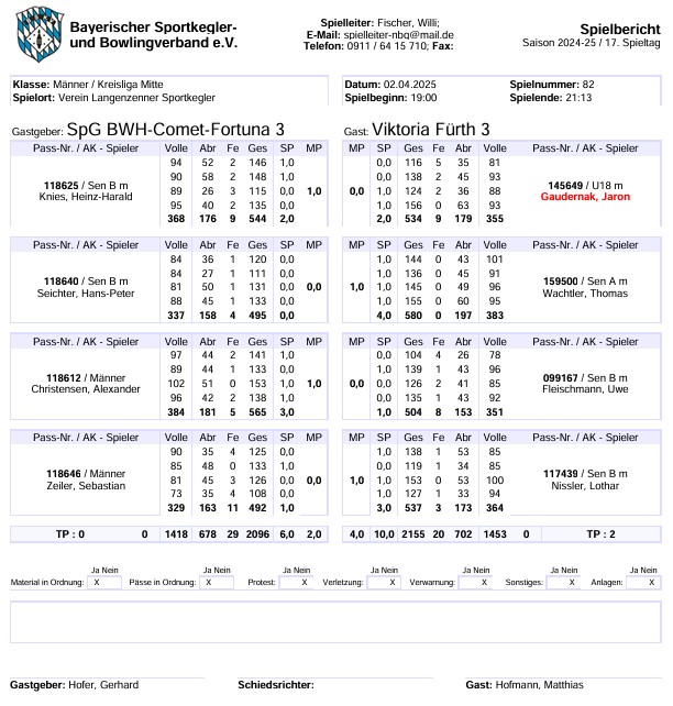 Termin Details Datum: 2. April 2025 19:00 – 21:30 Ort: Kegelzentrum Langenzenn Terminkategorien: Spielplan Viktoria 3 - Saison 2024/25