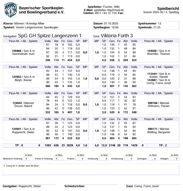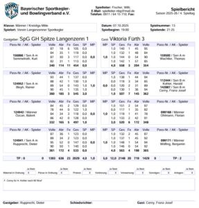 Termin Details Datum: 7. Oktober 2025 19:00 – 21:30 Ort: Kegelzentrum Langenzenn Terminkategorien: Spielplan Viktoria 3 - Saison 2025/26
