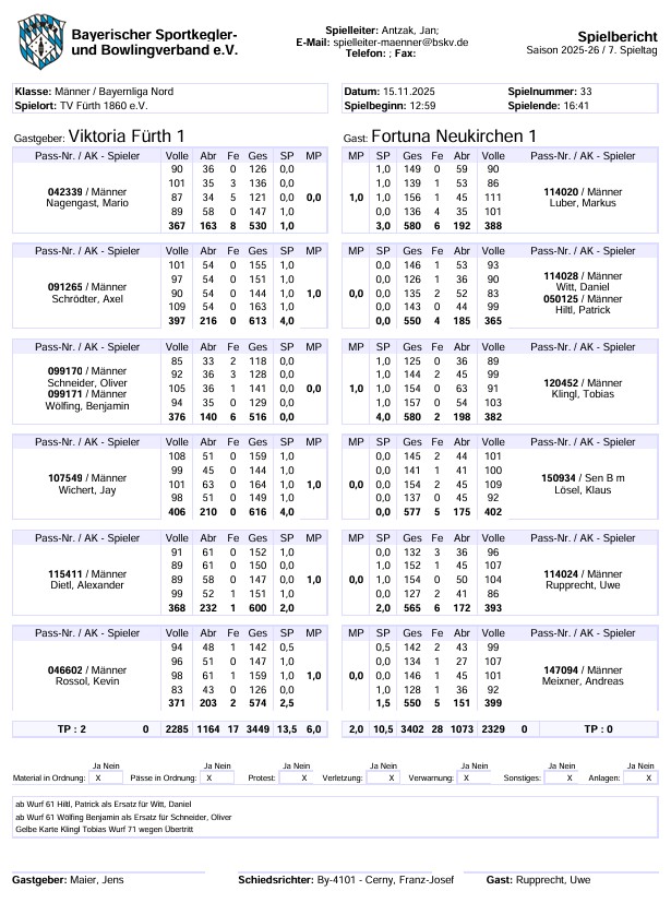 Termin Details Datum: 15. November 2025 13:00 – 16:30 Ort: TV Fürth 1860 Terminkategorien: Spielplan Viktoria 1 - Saison 2025/26