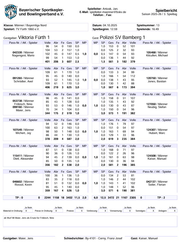 Termin Details Datum: 4. Oktober 2025 13:00 – 16:30 Ort: TV Fürth 1860 Terminkategorien: Spielplan Viktoria 1 - Saison 2025/26